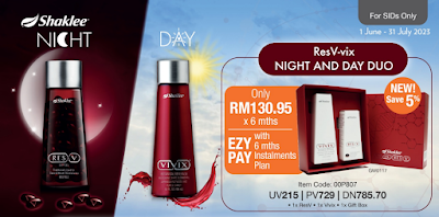Nota : Namun jika sahabat nak ambil Vivix ResV pada waktu malam atau siang insya Allah boleh belaka, cumanya saranan penggunaan terbaik daripada Pegawai Pemakanan Bertauliah Shaklee adalah seperti yang dinyatakan.
